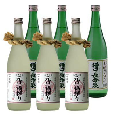大晦日から元旦の朝にかけて搾りあげた「成田霊水 元旦福搾り」を3本と、しほりたての無濾過生原酒「長命泉 槽口長命泉」3本をまとめてお送りいたします。