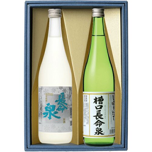 新しい冬の定番酒「冬吟醸」と、おなじみの冬の定番酒「槽口長命泉」をギフトセットにしました。
